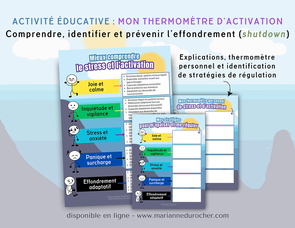 Je crée aussi des outils et des guides afin de promouvoir des stratégies et de partager des connaissances en lien avec l'adaptation, le bien-être et la santé mentale. Les outils sont disponibles dans la boutique en ligne.